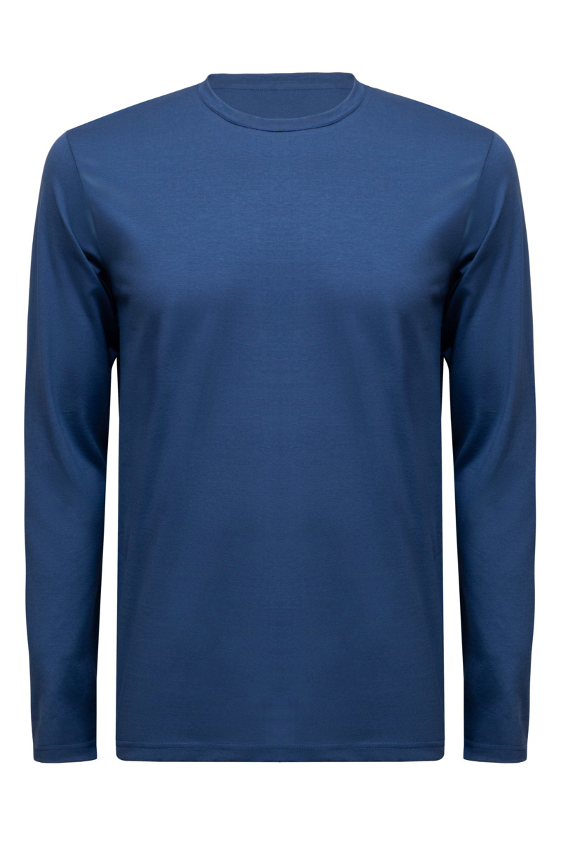 • Приталенный силуэт, Круглый, Однотонный, Синий